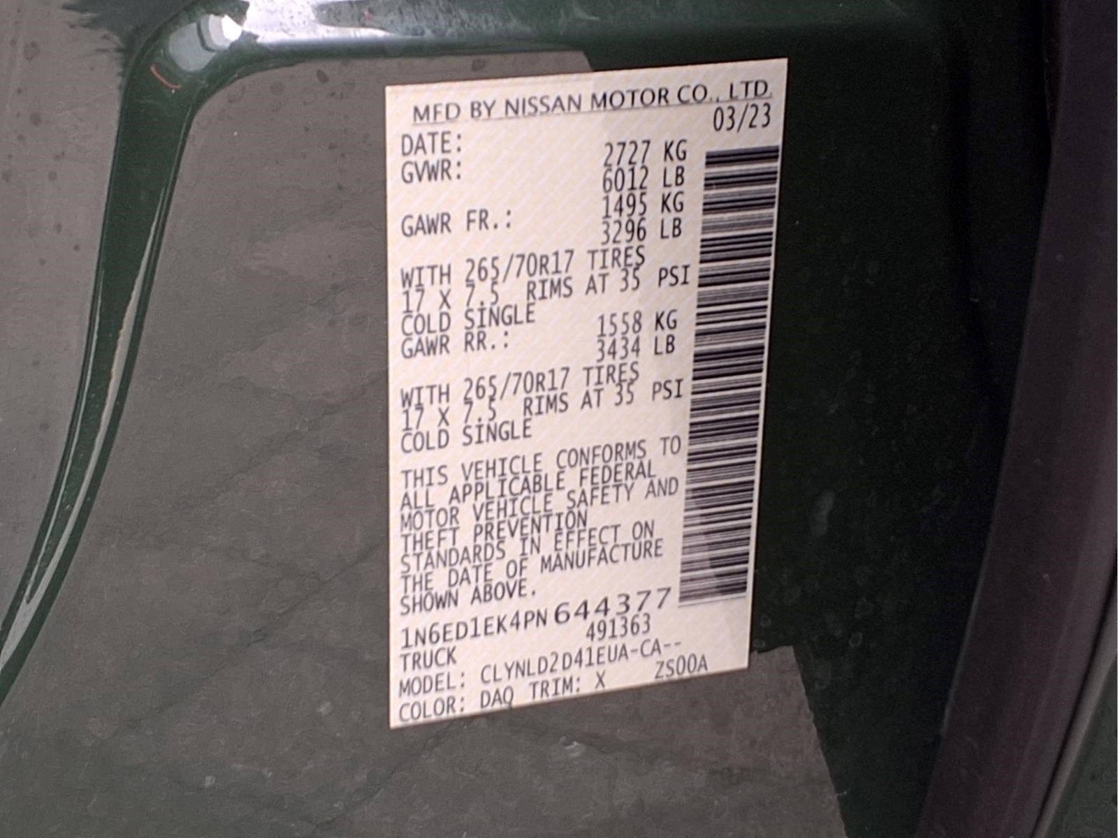 Recent Arrival! Certified. GREAT COLOR TACTICAL GREEN!!!!, 4WD. Clean CARFAX. CARFAX One-Owner. Tactical Green Metallic 2023 Nissan Frontier PRO-4X Odometer is 18598 miles below market average! 3.8L DI DOHC 24V V6 9-Speed Automatic 4WD OVER $7500. IN ADDED FEATURES.(THIS IS NOT Every vehicle we sell is state inspected by one of our Nissan trained technicians. A copy of all service work is available upon request. Low interest rates available through one of our 30+ lenders. One Year of complimentary Oil Changes included on every Peruzzi vehicle purchase!